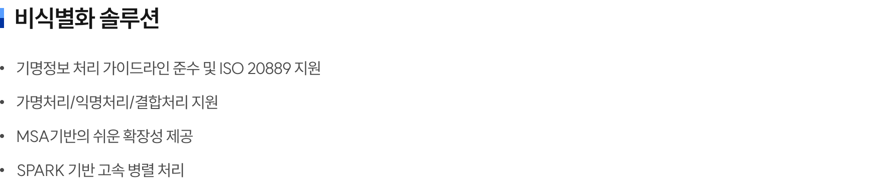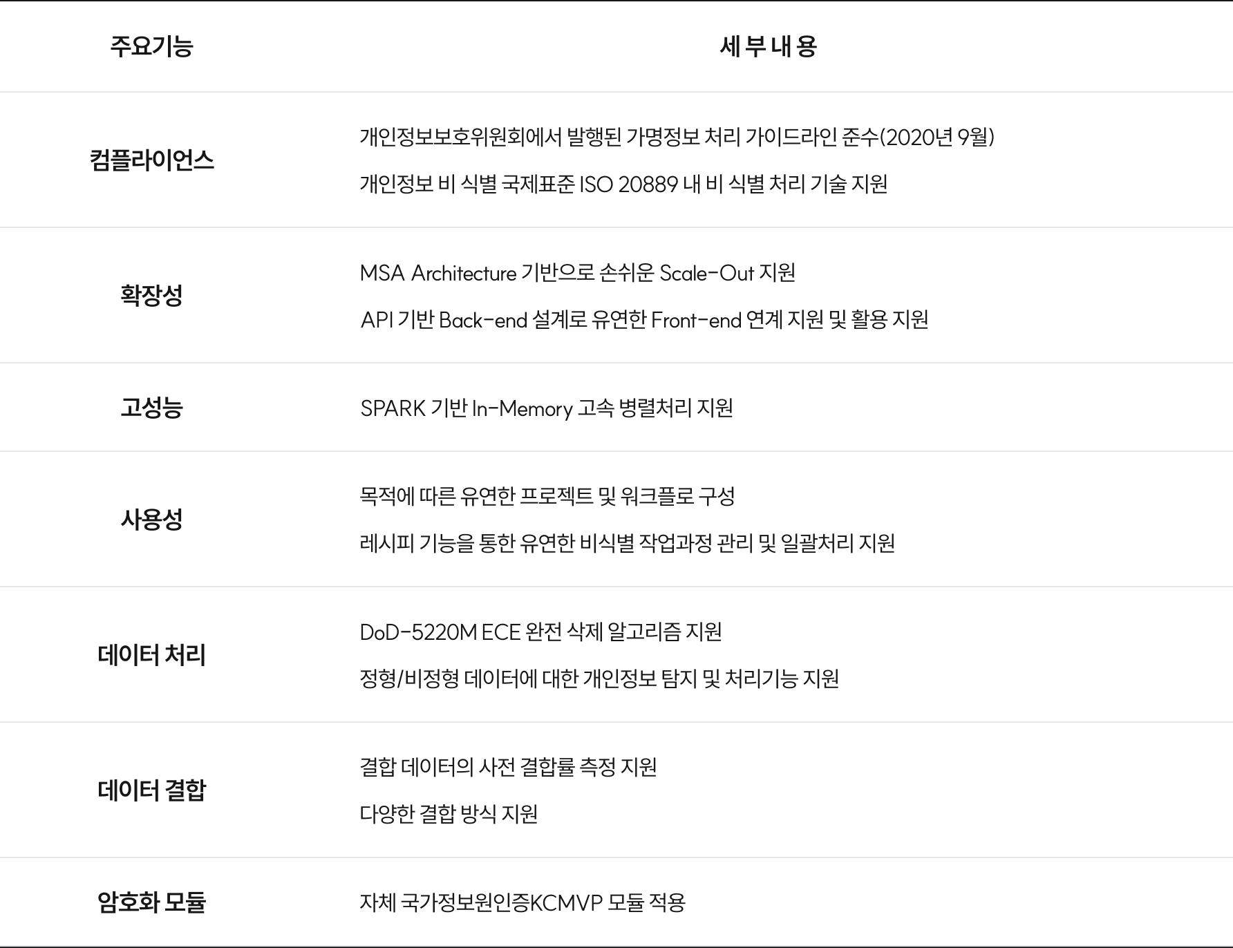 ISO 20889를 지원하는 개인정보 비식별 처리 솔루션입니다.